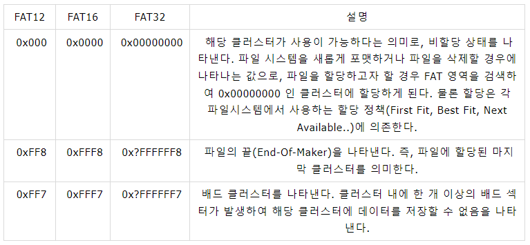 FAT entry 는 0번, 1번 index는 사용하지 않습니다.