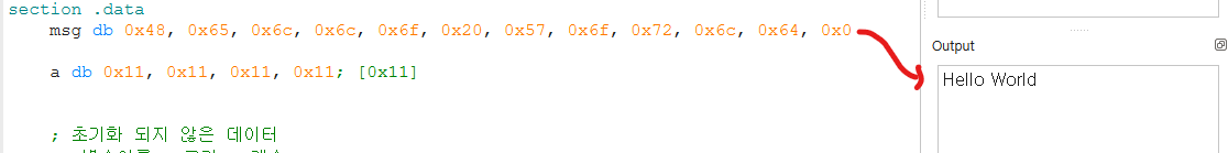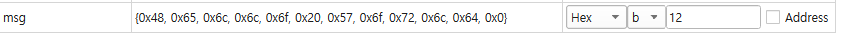 각각의 글자가 아스키 코드로 변환되어서 저장되어있는 것을 확인할 수 있다.