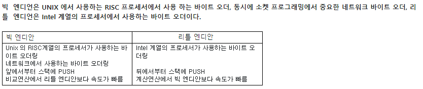 대체로 intel cpu는 리틀엔디안을 사용하고 AMD는 빅엔디안 방식을 사용한다