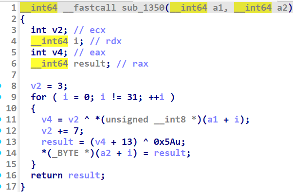 이 문제는 입력받은 값을 암호화하여 키 값과 비교하는 것이 아니므로 역연산이 필요없다.