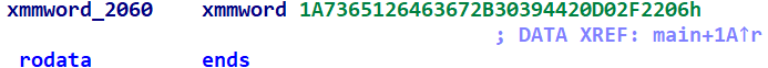 하지만 여기서 이상한 점을 발견할 수 있는데 단순히 xmmword_2060에 저장된 값은 16바이트 밖에 안된다. 따라서 15바이트를 또 찾아내야한다.