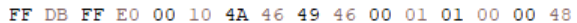 그 결과 FF D8이 되어야하는 부분이 FF DB로 되어있는 것을 확인하고 고쳤다.