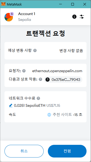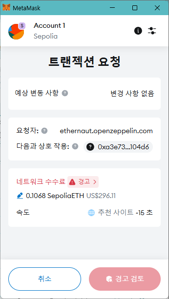 위의 사진과 같이, 처음에는 지갑에 잔고가 부족하여 거래요청을 받아들일 수가 없었다.