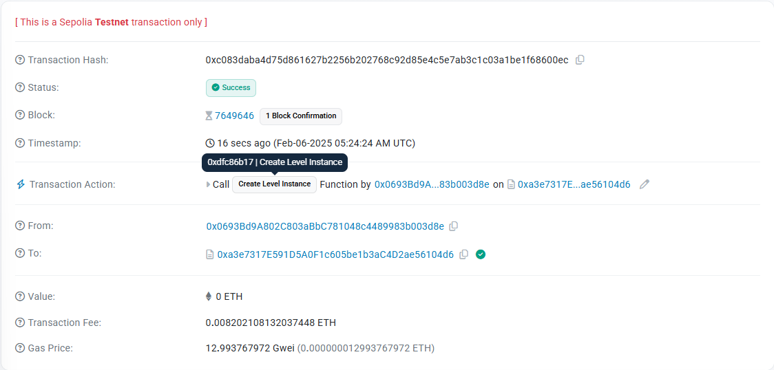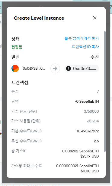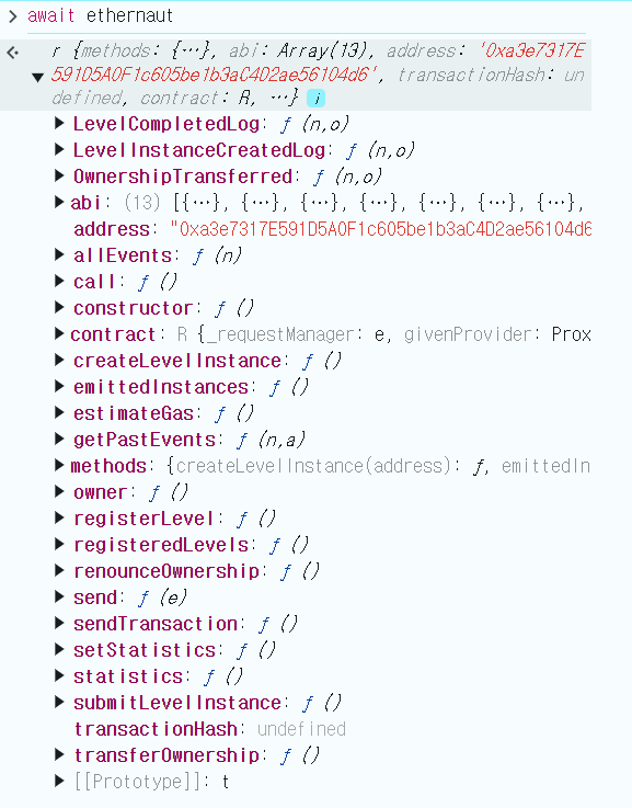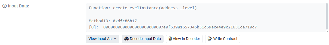 또한 Transaction Action 정보를 통해, 나는 작성된 코드 중 Create Level Instance 함수를 시행한 것임을 알 수 있었고, 이 함수의 프로토타입의 해시값의 첫 네 바이트는 0xdfc86b17이다.
