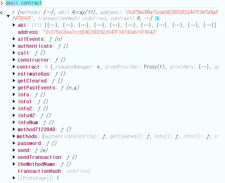 contract가 사용할 수 있는 매서드가 쭉 나열되어 있다.