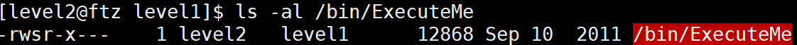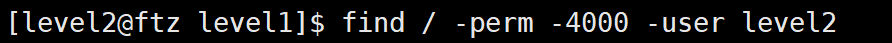 find 명령어로 level2에 setuid가 걸려있는 파일을 찾는다.