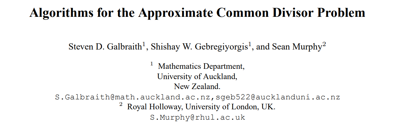 참고로 안내 받은 논문은 오클랜드 대학에서 낸 'Algorithms for the Approximate Common Divisor Problem' 논문이다.