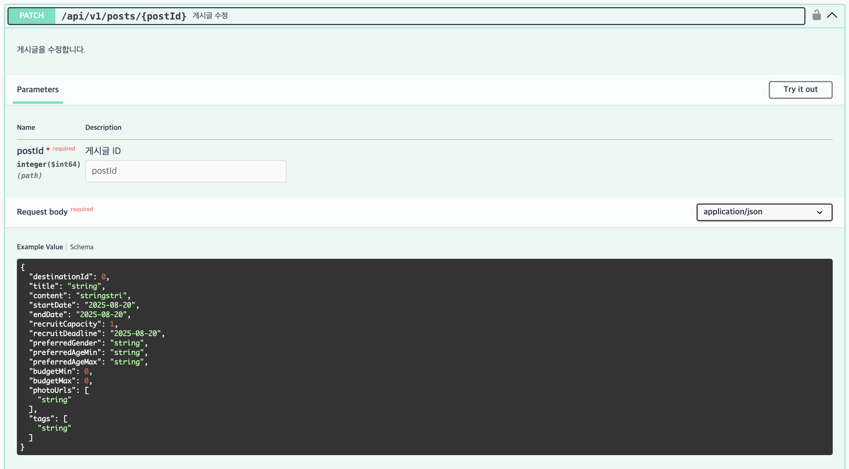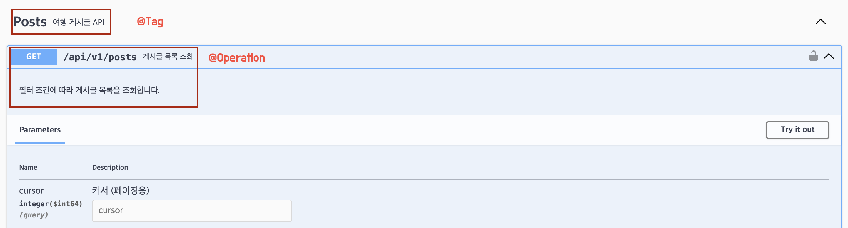 @Tag(name = "Posts", description = "여행 게시글 API")