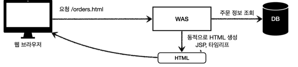 - 동적으로 필요한 HTML 파일을 생성해서 전달 (WAS 와 DB를 통해)