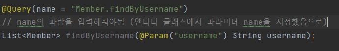 - 사용 예시 (@NameQuery의 지정한 name을 통해 쿼리를 재사용)