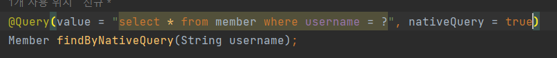 - 가급적 네이티브 쿼리는 사용하지 않는게 좋음, 정말 어쩔수 없을때 사용