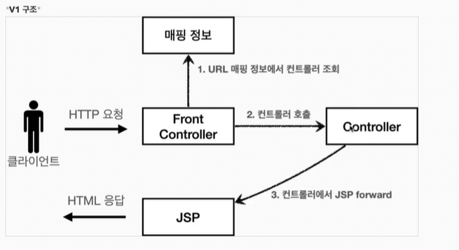 • FrontController 서블릿 하나로 클라이언트의 요청을 받음