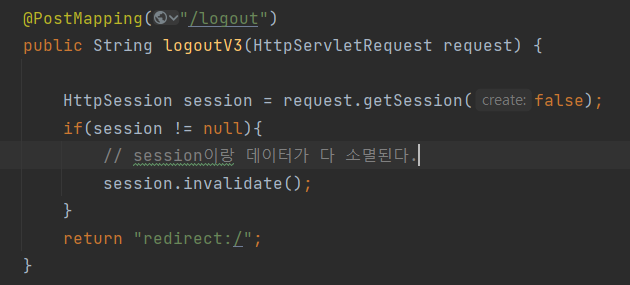 세션은 사용자가 로그아웃을 직접 호출해서 session.invalidate()