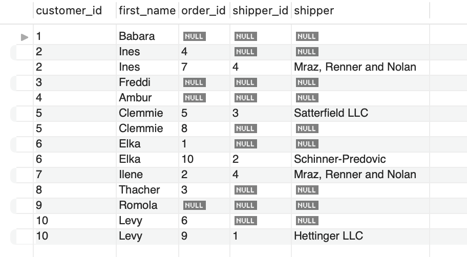 위 쿼리와 아래 쿼리는 똑같은 customer rows 를 반환한다.