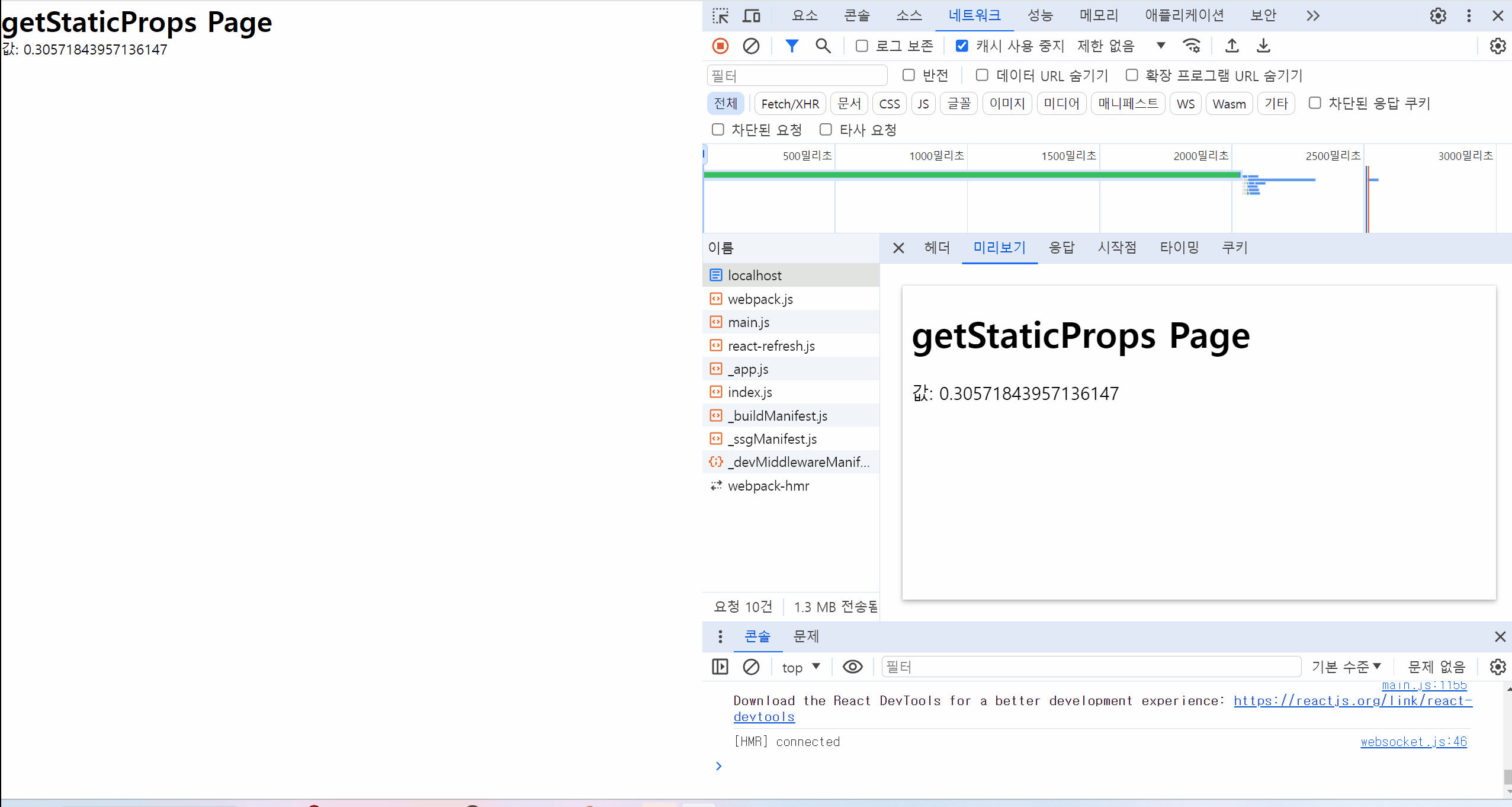 사진처럼 getStaticProps 파일이 다운받아진다.