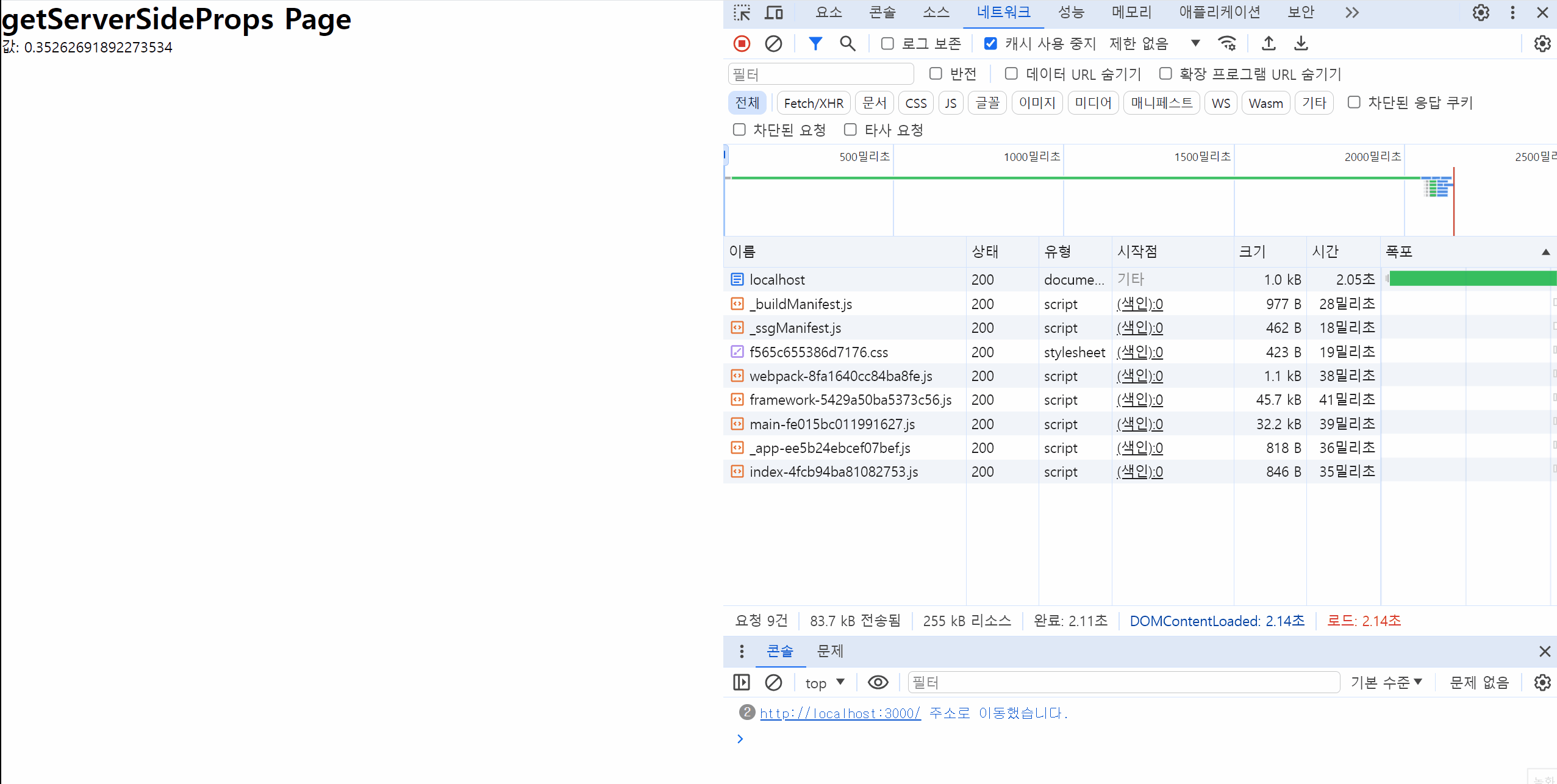 위 코드는 next에서 CSR 방식을 사용하는 코드이다 실행해보면 2초뒤에 값이 찍힌다.