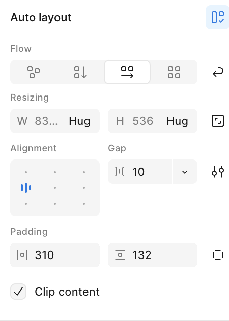 이때 프레임을 auto layout으로 감싸면 resizing 기능이 활성화 된다.
