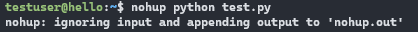 예를 들어 nohup python test.py 1 >> test.out이라고 쓰면 계속 숫자가 test.out이라는 텍스트 파일에 써질 것이다.