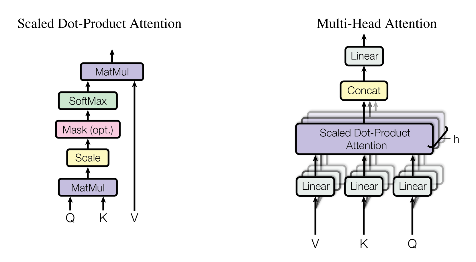 - 기존의 Dot-Product Attention은 key벡터의 차원 가 클 경우 additive attention에 비해 성능이 떨어지는 단점이 있다.