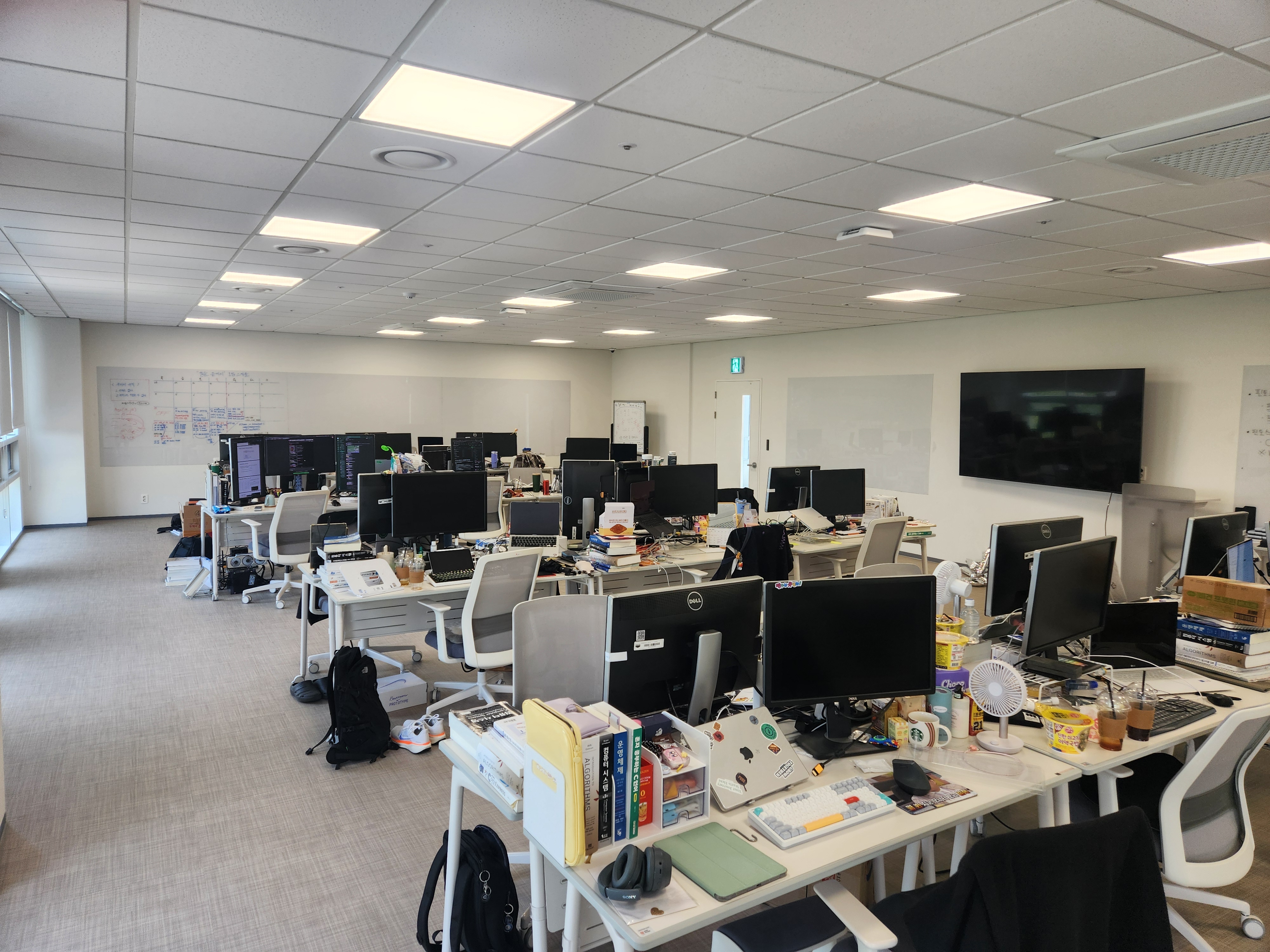바쁜 코드와 버그 사이, 초록빛 나무와 하늘의 구름이 작은 힐링을 선물해준다