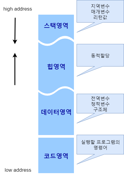 C 언어에서는 일반적으로 컴파일 시점에 메모리를 할당하는 정적 메모리 할당과, 프로그램 실행 중 필요한 시점에 메모리를 할당하는 동적 메모리 할당