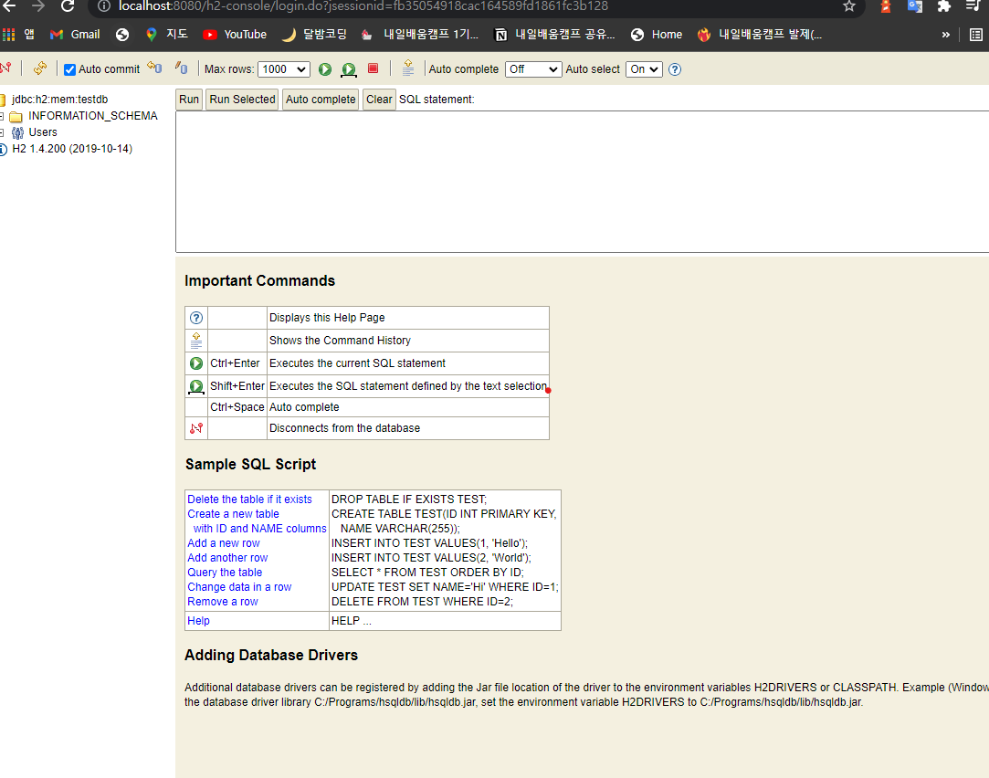 H2: RDBMS의 한종류, 서버가 켜저있는 동안에만 작동하는 RDB