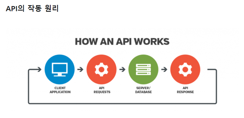 : 여기서 애플리케이션이란 우리가 흔히 알고 있는 스마트폰 어플이나 프로그램을 말하는데. API는 애플리케이션과 기기가 데이터를 원활히 주고받을 수 있도록 돕는 역할을 한다.