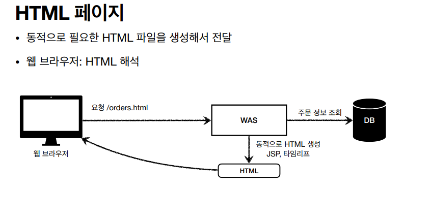 주문내역을 보여주세요! 같은 동적인 요청은 WAS가 동적으로 HTML을 생성해서 그거를 웹 브라우저에 보여준다.