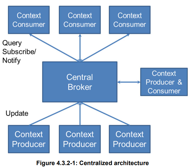 그들은 Context Registry에 등록하여 제공할 수 있는 컨텍스트 정보에 대한 정보를 제공하지만 컨텍스트 정보 자체는 제공하지 않습니다.특정 Context Source는 건물 A 및 건물 B의 실내 온도를 제공할 수 있거나 도시의 중심을 덮고 있는 지리적 영역에서 자동차의 속도를 제공할 수 있다고 등록합니다.