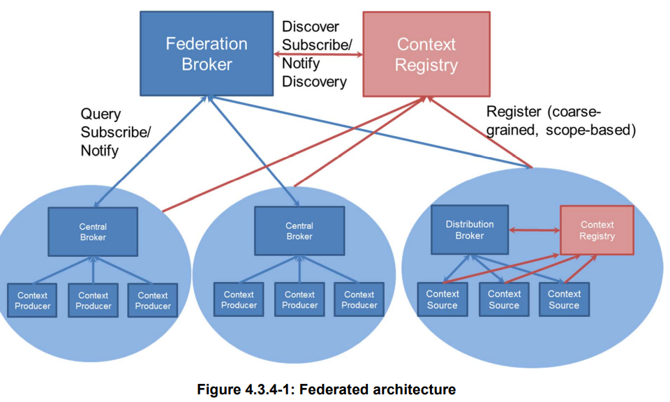 일반적으로 도메인은 보다 거친 수준의 연합 Context Registry에 등록되어 요청에 제공된 범위와 일치할 수 있는 범위, 특히 지리적 범위를 제공한다. 예를 들어, 건물과 같은 개별 엔티티를 등록하는 대신 도메인은 지리적 영역 내의 건물 유형에 대한 엔티티 정보를 가지고 등록된다.