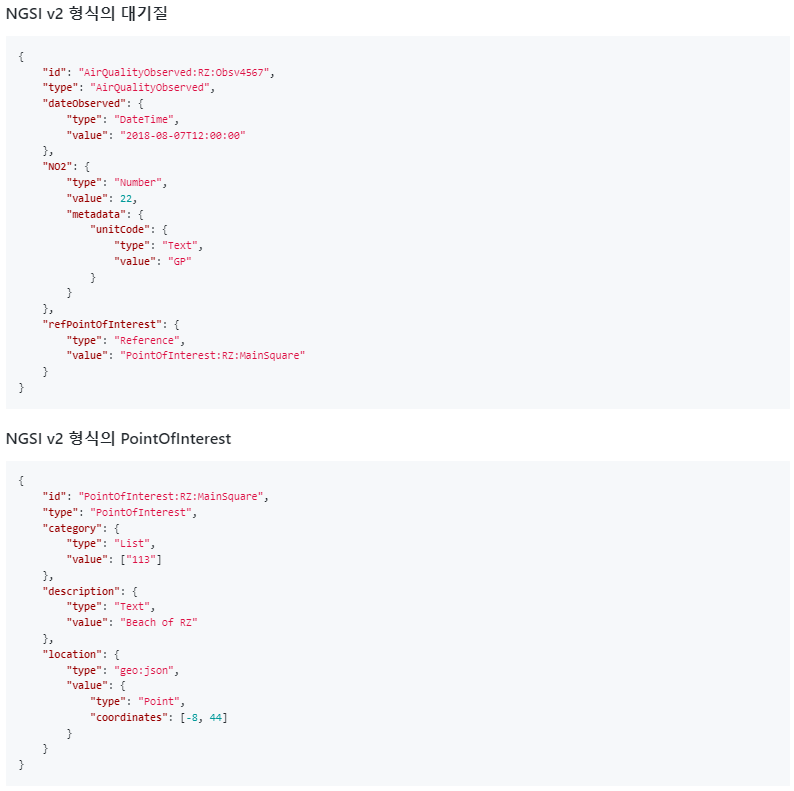 NGSI-LD 엔티티는 JSON-LD [2]를 사용하여 인코딩된 객체로 표현되어야 한다