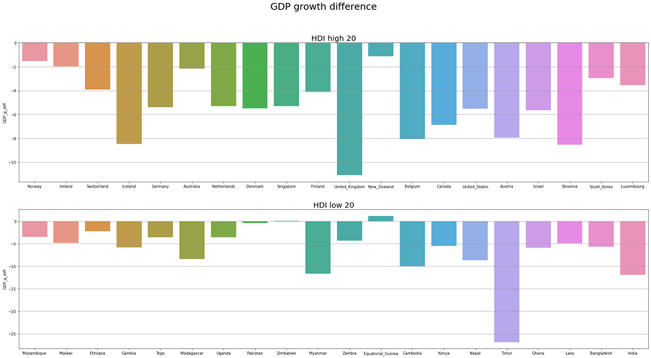 • 'GDP 성장률 차이'를 지표로 활용: 2020 GDP성장률 - 2019년 GDP성장률