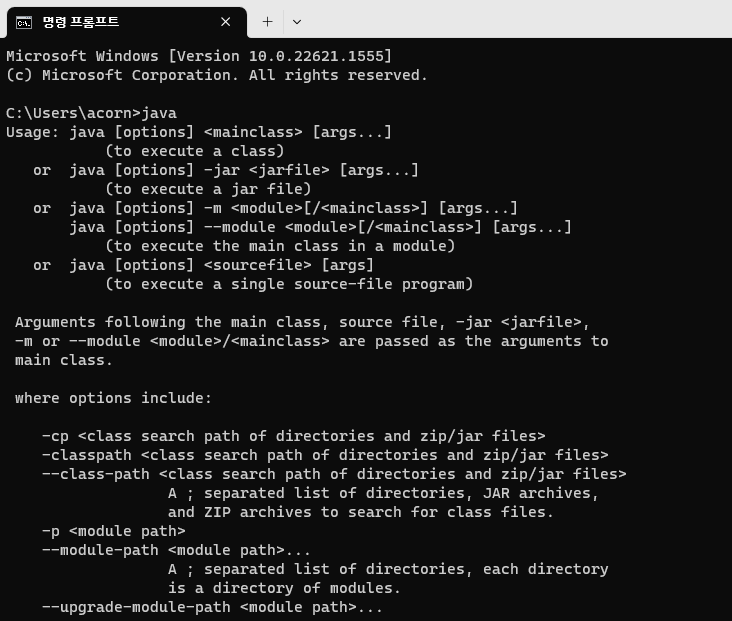 java 설치 후 , command 창에서 설치 되었는지 확인해보기