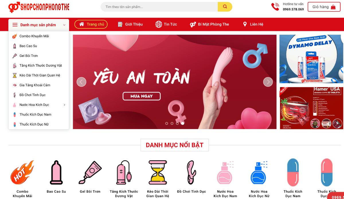 Danh mục sản phẩm phong phú, từ bao cao su kéo dài thời gian đến sextoy hiện đại.
