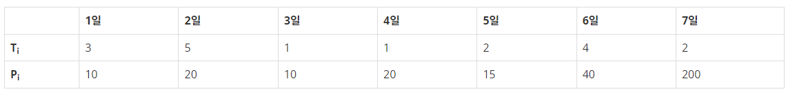 즉, dp[1]을 구하려면 1일의 요금인 10 + Math.max(dp[4], dp[5], dp[6], dp[7])이 되는 것이다.