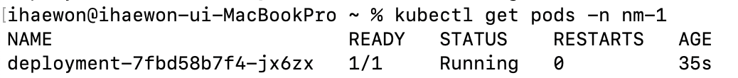 deployment-5c5fcf5558-nh2gq 파드는 Init:0/1 상태로 초기화 작업을 실행중이다. 이를 통해 배포가 시작되었고 롤링 업데이트가 진행 중이라는 것을 알 수 있다.