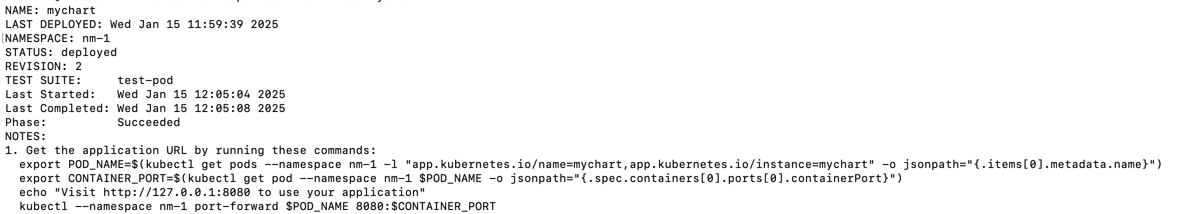 $ helm test mychart -n nm-1