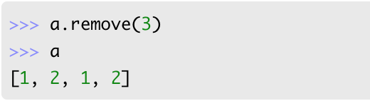 만약 그 다음 중복되는 값도 삭제하고싶으면 remove(3)을 한 번 더 실행하면 다시 3이 삭제된다.