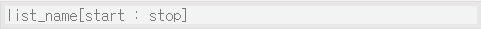 파이썬에서는 리스트의 일부분을 따로 copy 할 수 있습니다. 이것을 slicing 이라고 합니다. 문자열 에서도 사용이 가능 합니다.