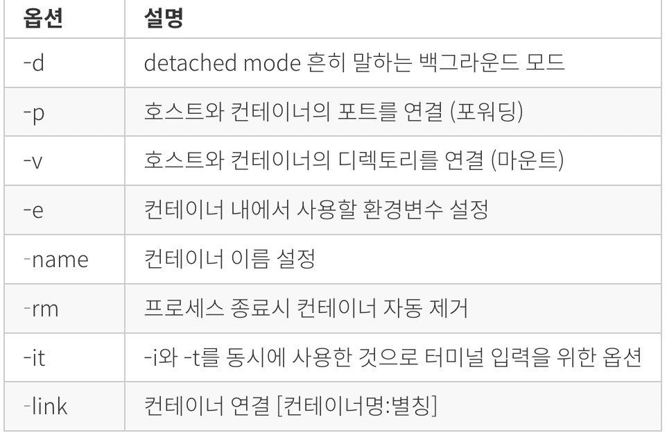 run 명령어를 사용하면 사용할 이미지가 저장되어 있는지 확인하고, 없다면 이미지를 다운받은 후 컨테이너를 생성하고 시작 한다.