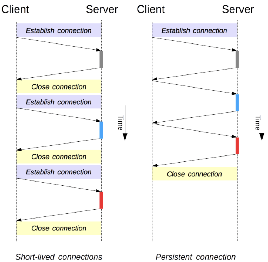 Connection을 유지하지 않는 것을 기본 동작으로 가지는 이유는 Connection을 유지하게 되면 지속적으로 서버 리소스가 사용되기 때문이다. 따라서 Connection 유지는 최소화하는 것이 좋다.