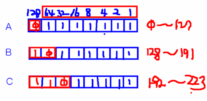 | A Class | 0~126(127) | 10.0.0.0~10.255.255.255 | |