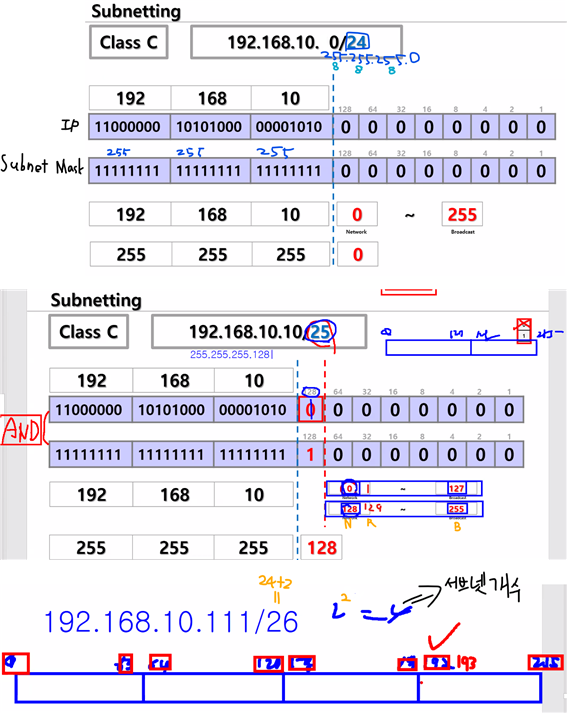 | C Class | 192~223 | 192.168.0.0~192.168.255.255 | |