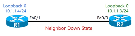 - neighbor가 없어 OSPF는 의미가 없는 상황이므로 최초 Down 상대에서 시작된다.