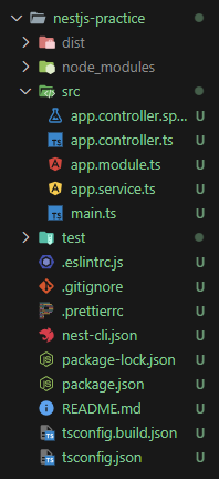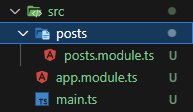 이렇게 하면 src 아래 module이 생성된다. 초기에는 module 파일만 존재하며 이제 필요한 controller, service 등을 하나씩 만들어줘야 한다.