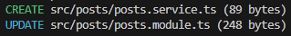 위의 명령어로 controller를 생성하면 posts directory에 controller file이 먼저 생기고(CREATE), 같은 위치의 module file을 찾아 controller를 등록(UPDATE)하게 된다.