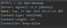 Response를 확인해보니 502 Bad Gateway 에러가 발생했다.