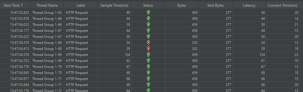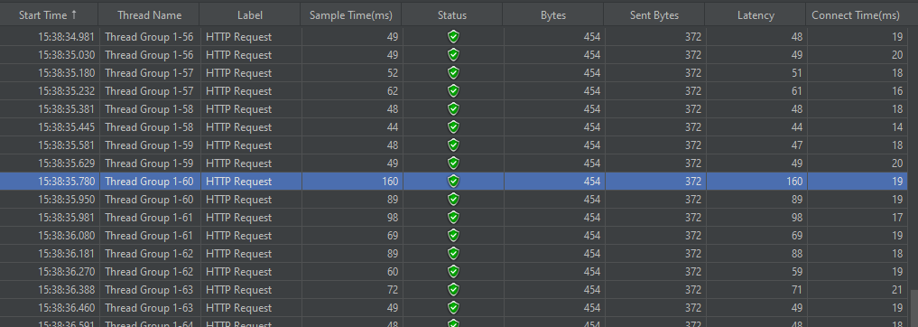 결과를 보면 대략 0.1초 간격으로 보내지는 요청이 모두 잘 처리된 것을 볼 수 있다.