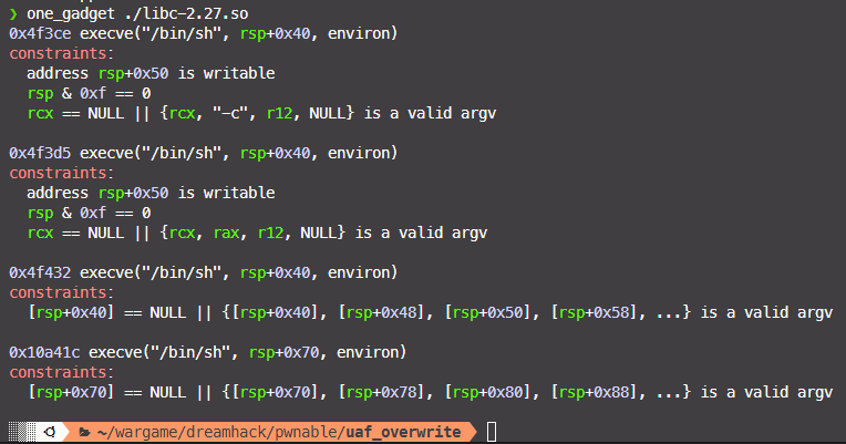 이어서 얻은 leak을 통해 libc base를 구하고 얻은 libc base를 통해 oneshot gadget의 주소 또한 구한다.