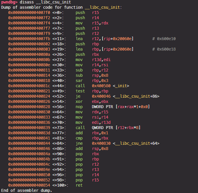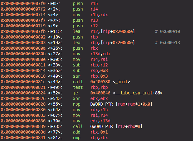 __libc_csu_init 함수가 있고 해당 함수를 디스어셈블하면 다음과 같다.